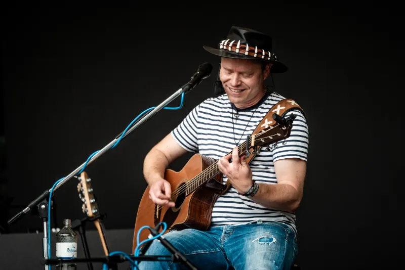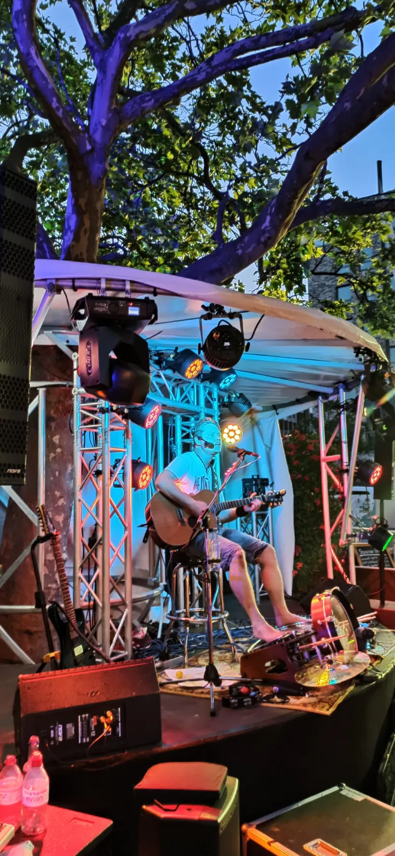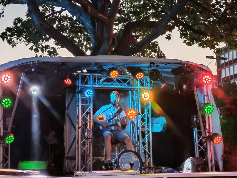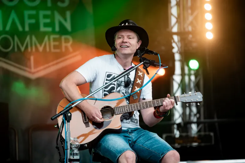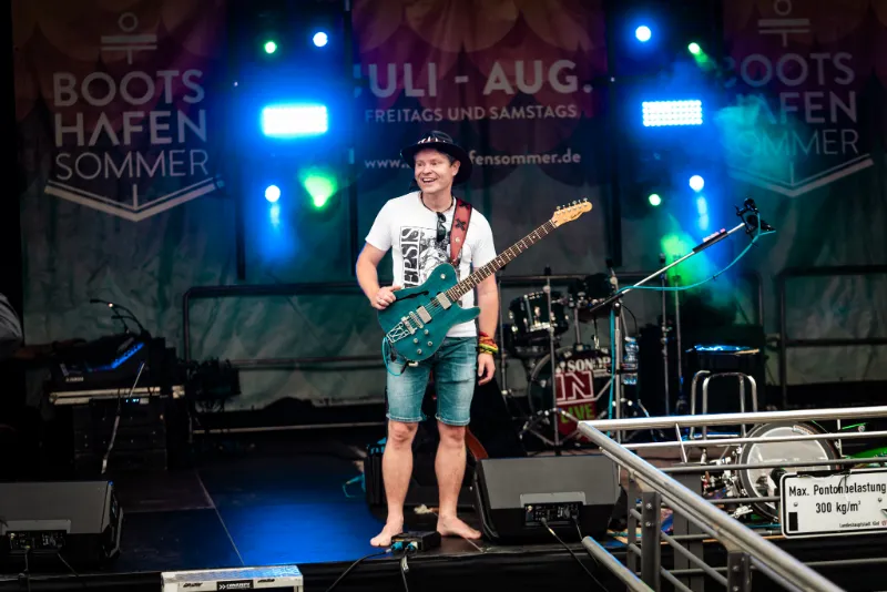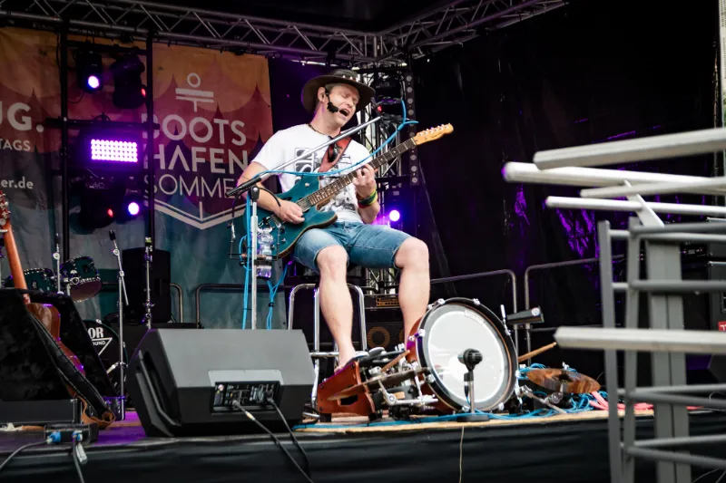 Als One-Man-Band stehe ich alleine auf der Bühne und bringe trotzdem die volle Energie einer Rockband. Alles, was zu hören ist, entsteht live: keine Playbacks, keine Loops, keine Samples.