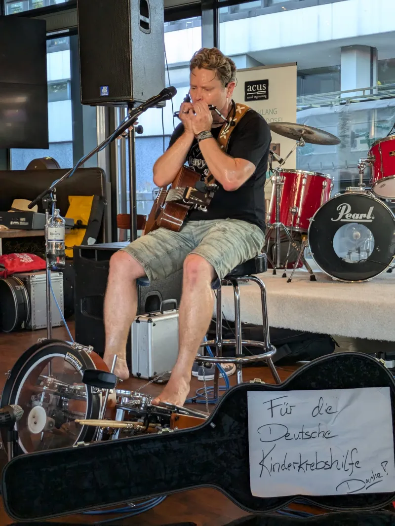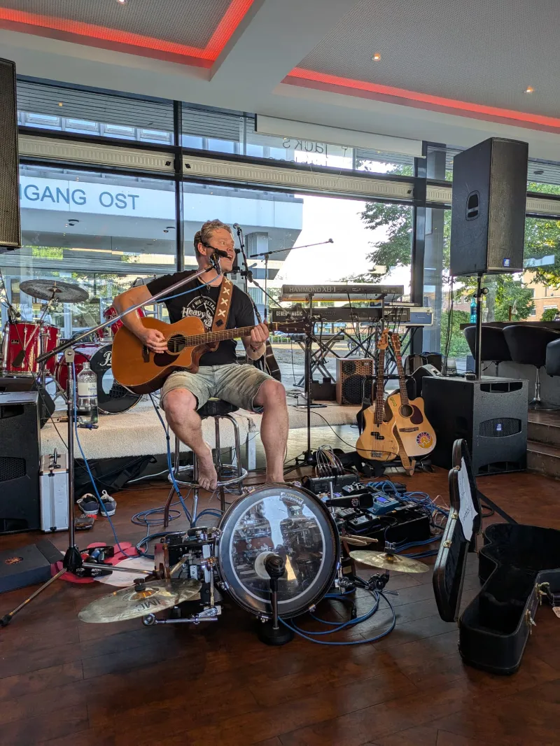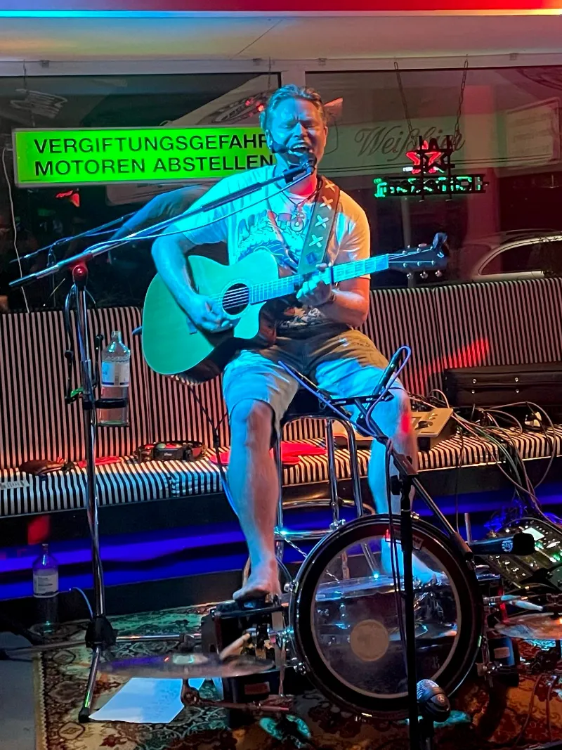 • One-Man-Band: Gesang, Gitarre, Bass und Schlagzeug werden live und gleichzeitig gespielt