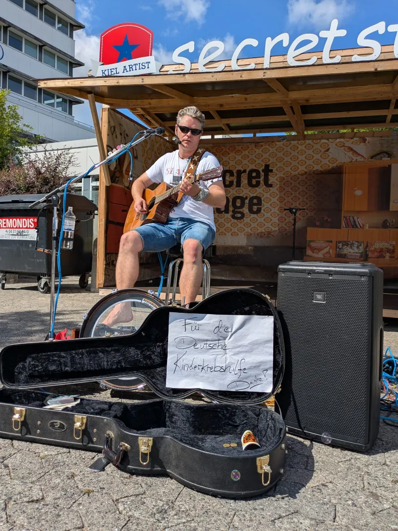 Als Musiker möchte ich einen kleinen Beitrag leisten zu helfen. Jeder einzelne Cent aus der Hutgage, den ich bei meinen Auftritten erhalte, wird gespendet, um Kinder zu unterstützen, die von Krebs betroffen sind.